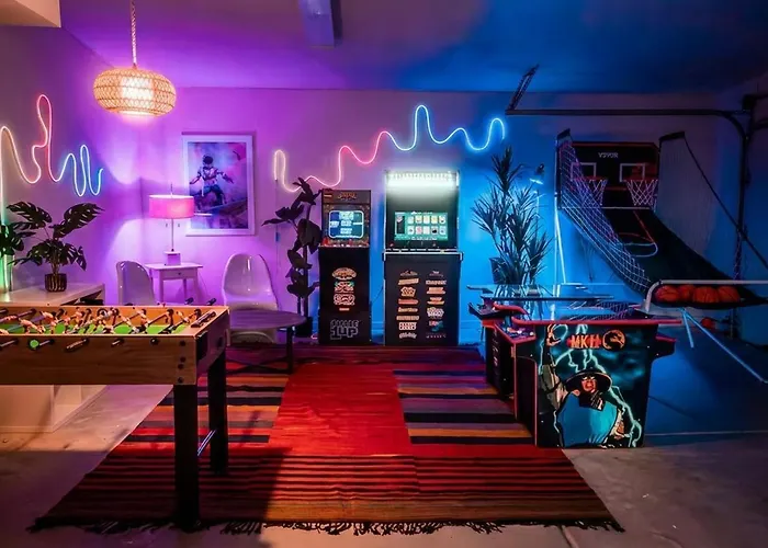 During the stay at Resort Pool, Spa, Game Room, Fireplace & Billiards Desert Hot Springs villa, guests can indulge in billiards and darts or visit the American Cabot's Pueblo Historic House Museum, located about 6 km away. Featuring a hot tub, this property is within a 10-minute drive of the Wellness Park.